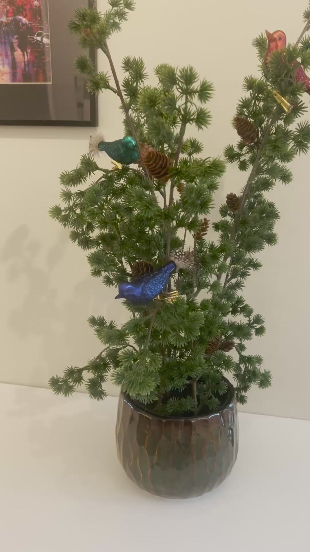 Vil du ha julestemning uten å rydde plass til et stort tre? Dette dekorative juletreet i potte gir deg akkurat det – enkelt, klassisk og koselig. Treet er laget i PE og PP materiale, pyntet med små kongler og står i en sort potte. Når høytiden er over, pakker du det ned igjen i originalesken for trygg og praktisk oppbevaring. Ønsker du lys på treet? Da passer vår Glow lyslenke perfekt – den er akkurat passe diskré, men gir et varmt og koselig skinn. Treet finnes i to størrelser – ideelt til bord, gang, soverom eller som et ekstra tre i stua. Størrelse potte: D12 cm H11 cm.