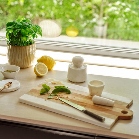 Se alle detaljerDette stilrene fatet i marmor kombinerer form og funksjon på en elegant måte. Den nøytrale fargetonen og det tidløse designet gjør at brettet glir ...