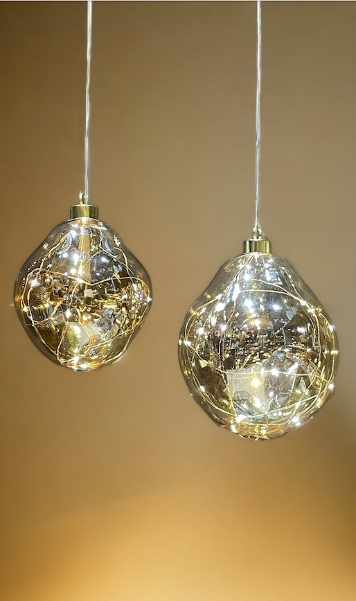 Velg mellom to størrelser og tre vakre farger som passer perfekt til mørke kvelder og gir en koselig atmosfære. Gjør vinteren litt mer glamorøs med disse dekorative lyskulene – den ideelle detaljen for å lyse opp kveldene.