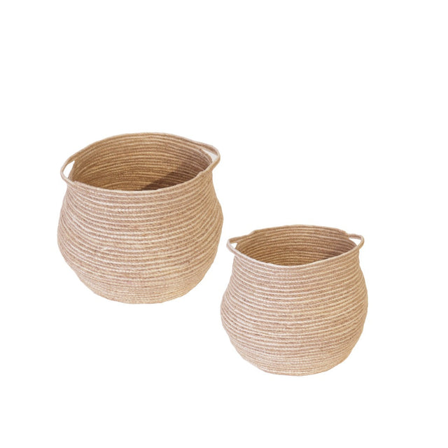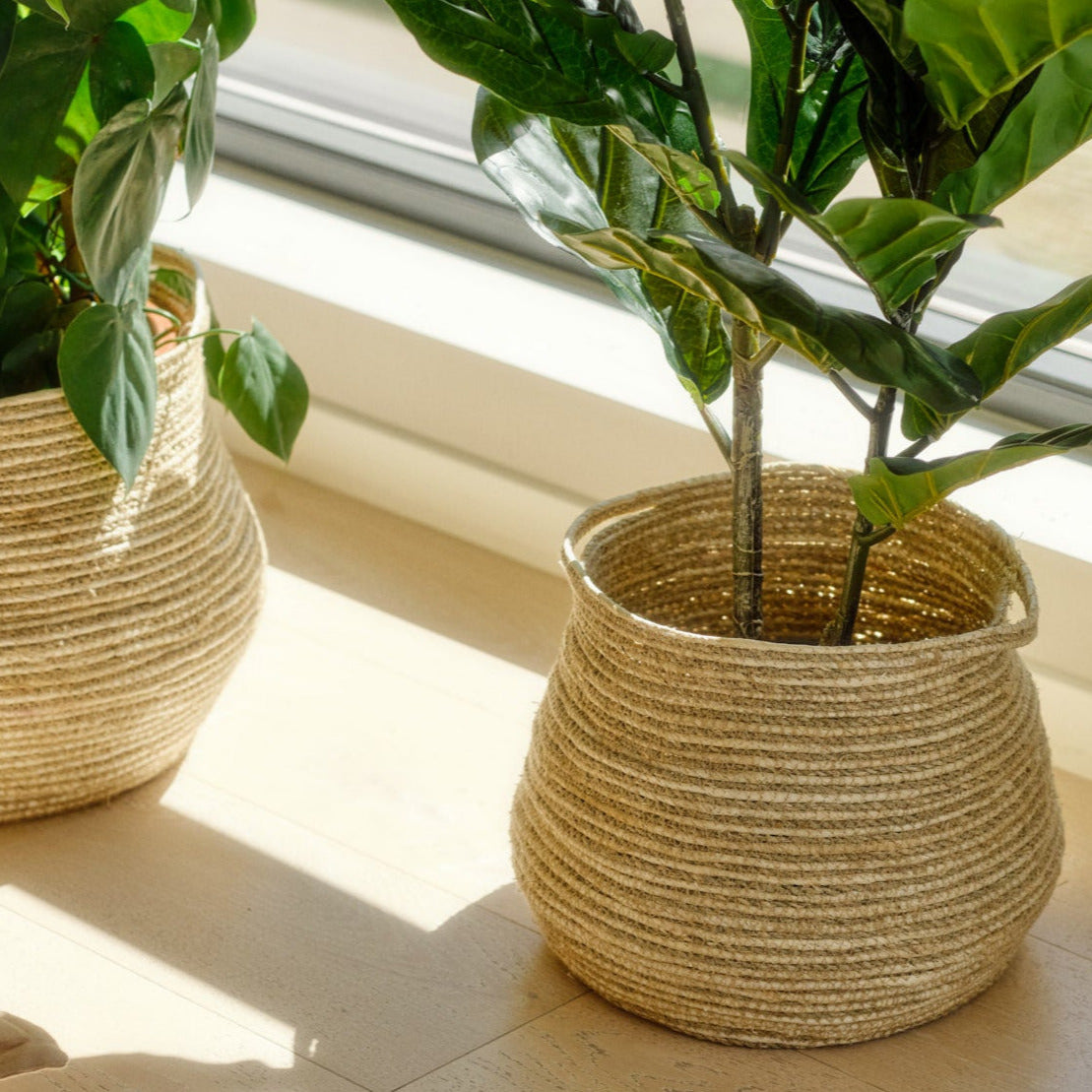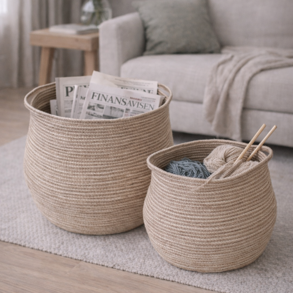 Få orden med stil med vårt Laos kurvsett. Disse kurvene er laget i 50% strå, 45% sjøgress og 5% polyester, og tilbyr en unik kombinasjon av naturlig sjarm, funksjonalitet og slitesterk konstruksjon. Om du trenger et sted å organisere strikketøyet og magasiner i stua, toalettartikler på badet eller kanskje samle småting i gangen, så er disse kurvene en allsidig løsning. Kurvene passer også perfekt som potteskjulere for våre kunstige planter Flora.
