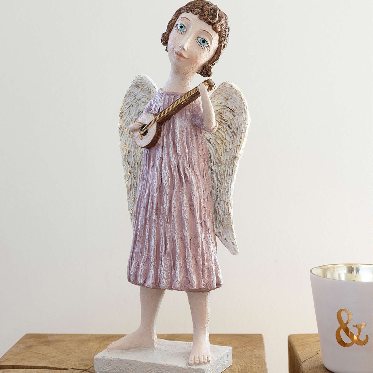 Ta med en følelse av litt himmelsk magi og karakter til ditt hjem med våre sjarmerende englefigurer i polyresin. Hver av disse englene er håndmalt og finnes i flere størrelser. Mål: H39 B15 D9,5 cm.