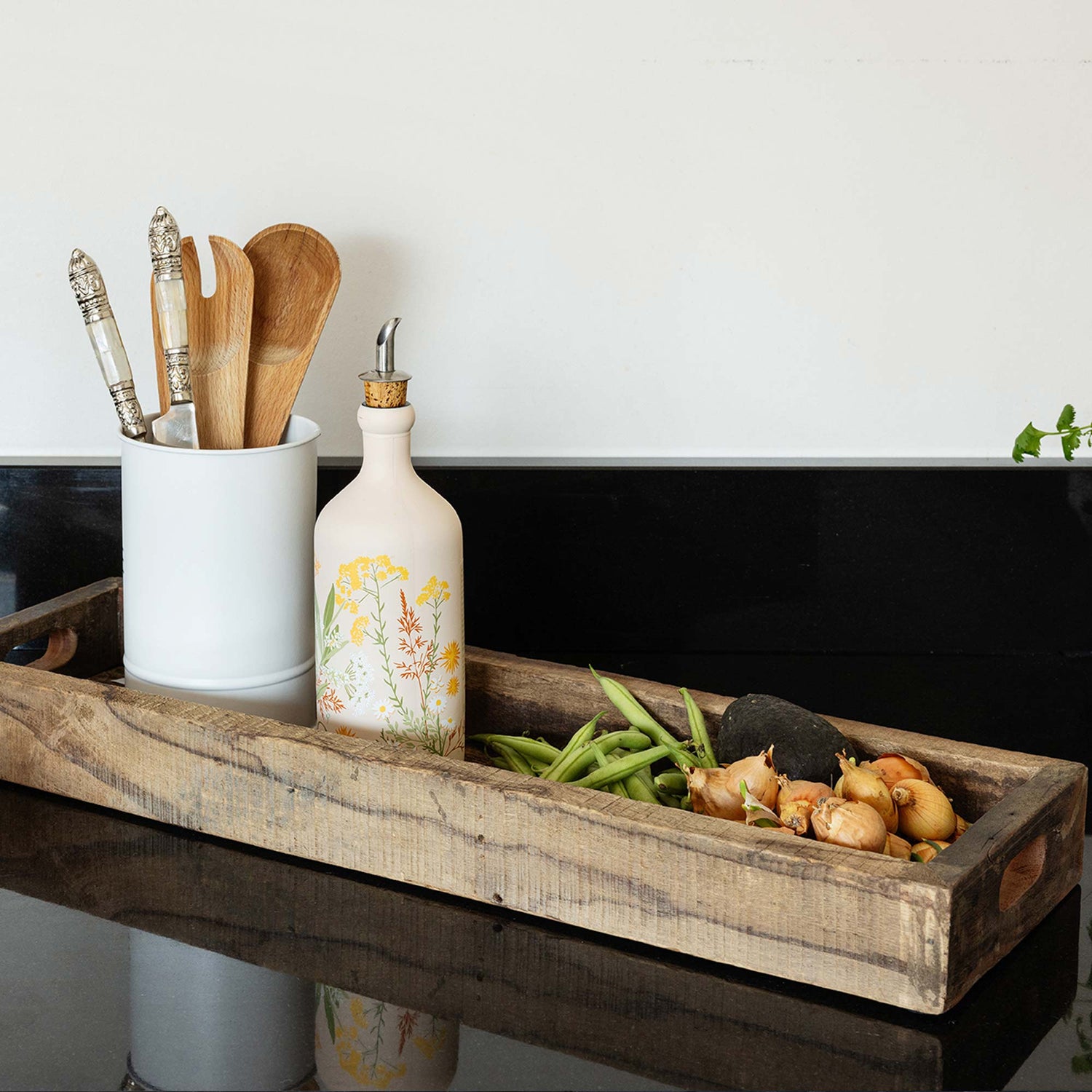 Stilig og rustikt brett laget i resirkulert tre, med ulike treslag. Tre gir produktet en unik varme og tilfører ro og harmoni til interiøret. Bruk Madera brett til servering eller dekorasjon. Brettet har håndtak.