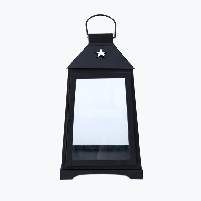 Klassisk lykt med stjernedekor. Lykten er håndlaget i pulverlakkert jern med matt, sort finish og klart glass. Stars lykt kan brukes hele året, men er ekstra fin når den dekoreres med for eksempel granbar og kongler til jul. Passer perfekt sammen med våre Ambience LED-lys.