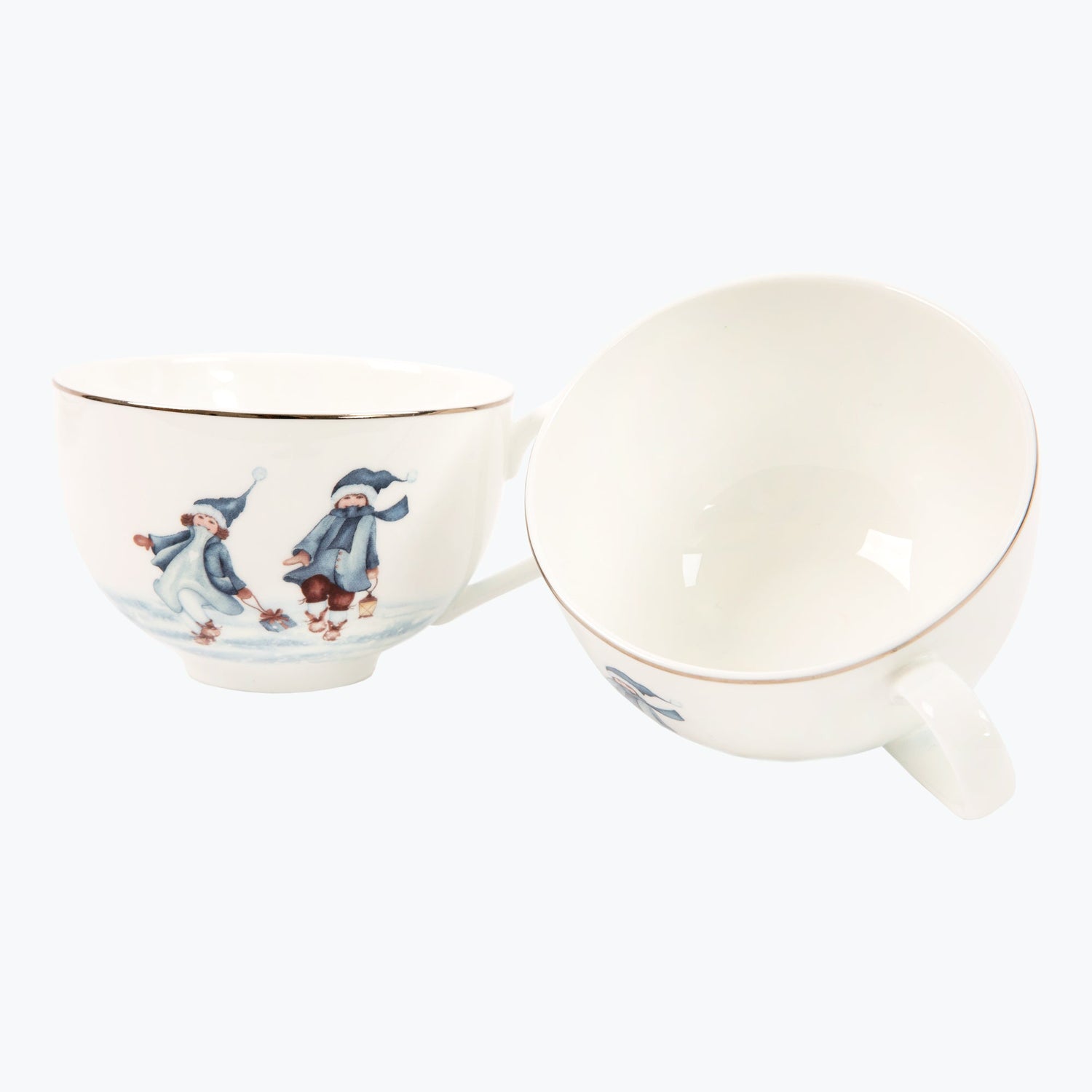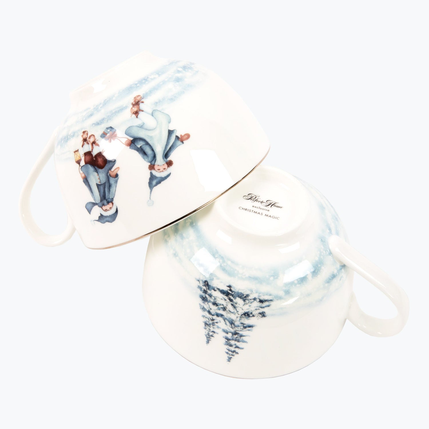 Vakre Christmas Magic servise er produsert i høykvalitets-porselen. Serviset har en stemningsfull dekor med glade barn som danser gjennom vinterlandskapet klare for julens magiske øyeblikk.
