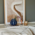 Denne sjarmerende vasen i dolomitt er dekorert med håndmalte striper i blått og hvitt som bringer sommerstemning inn i hjemmet ditt. Vasen fungerer like godt som et selvstendig blikkfang på en hylle eller bord, eller som en del av en større komposisjon. Kombiner gjerne Nea vase med Elona vase - perfekt for den som ønsker et samlet uttrykk med variasjon.