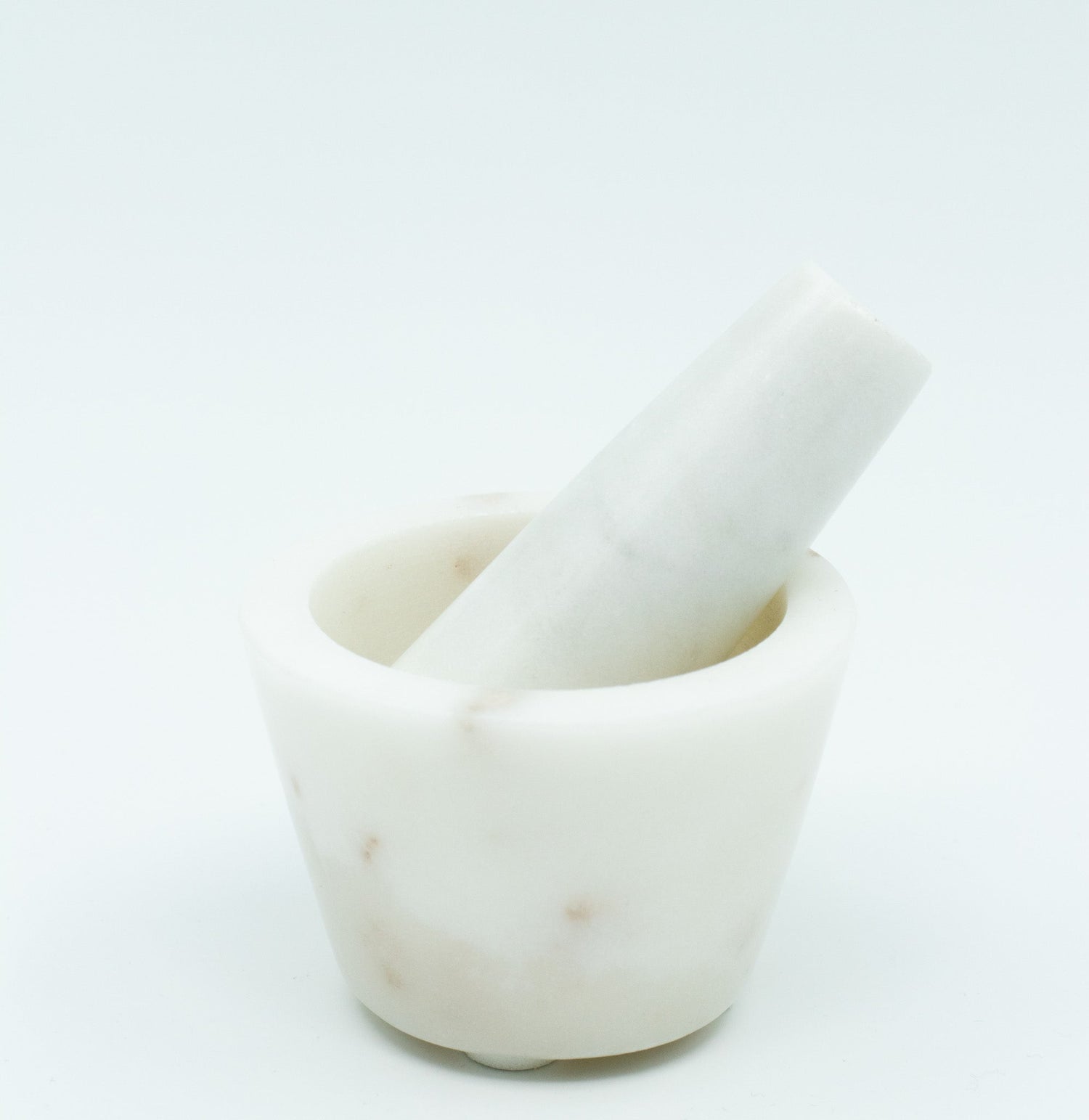 Denne elegante morteren er laget av hvit marmor og kombinerer stil med funksjonalitet. Den er perfekt for både kjøkkenet og servering. Morteren er ideell for å male og blande krydder og urter og gir en autentisk opplevelse i matlagingen. La White Marble morter bli et blikkfang på kjøkkenet ditt. Vær oppmerksom på at hvit marmor kan ta til seg flekker fra krydder og oljer.