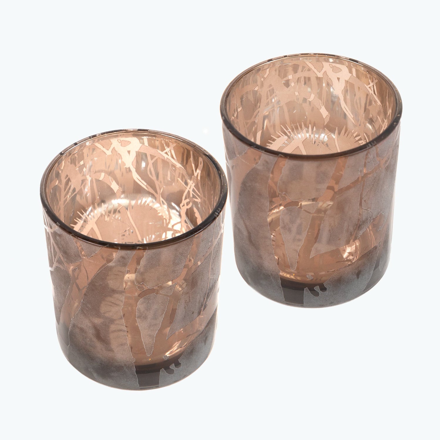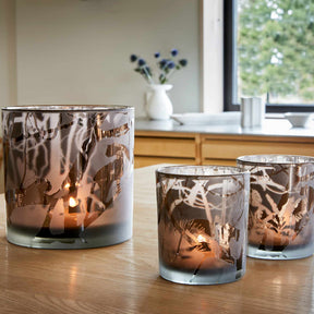 Nydelige telysholdere som gir et flott og stemningsfullt lys når du tenner telys i disse. Telysholderne er laget i munnblåst glass, har en sølvfarget innside og et sandblåst jungel- og pantermotiv på utsiden.