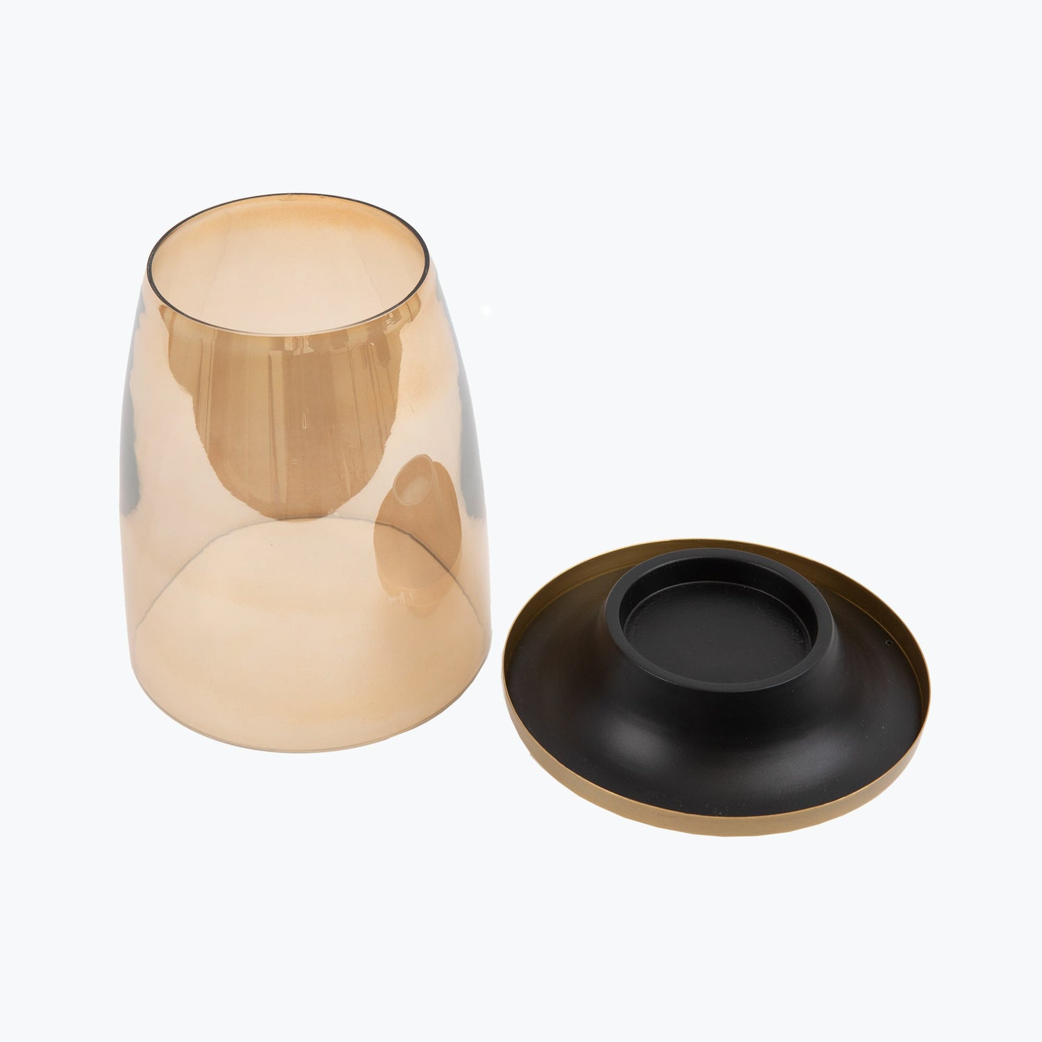 Staselig lykt med munnblåst glass med en gyllen lustereffekt. Denne lykten er vakker alene, men helt fantastisk sammen den store Ravina lykten. Bruk gjerne Glow lyslenke eller et av våre Ambience LED-lys i denne lykten.