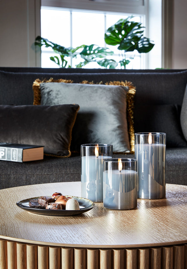 Lekkert batteridrevet LED-lys med glassbeholder som gjør at lyset ser ut som en lykt. Lyset kommer i tre størrelser og har en meget naturtro flamme med lang brennetid. Med Ambience fjernkontroll kan du enkelt tidsinnstille lyset, skru det av og på, dimme til ønsket lysstyrke, samt bestemme om du vil ha blafrende flamme eller ikke. Fjernkontrollen selges separat.