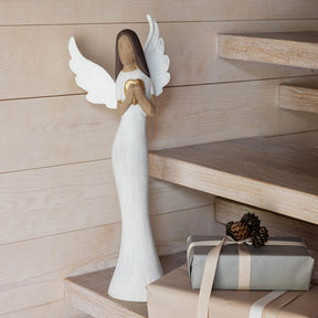 Vakker engel laget i hvitmalt mangotre med gullhjerte. Angel passer perfekt som dekorasjon i vinduskarmen, på skjenken eller i trappen, og fungerer like godt alene som sammen med andre produkter.