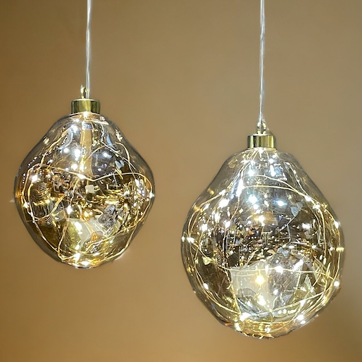 Velg mellom to størrelser og tre vakre farger som passer perfekt til mørke kvelder og gir en koselig atmosfære. Gjør vinteren litt mer glamorøs med disse dekorative lyskulene – den ideelle detaljen for å lyse opp kveldene.