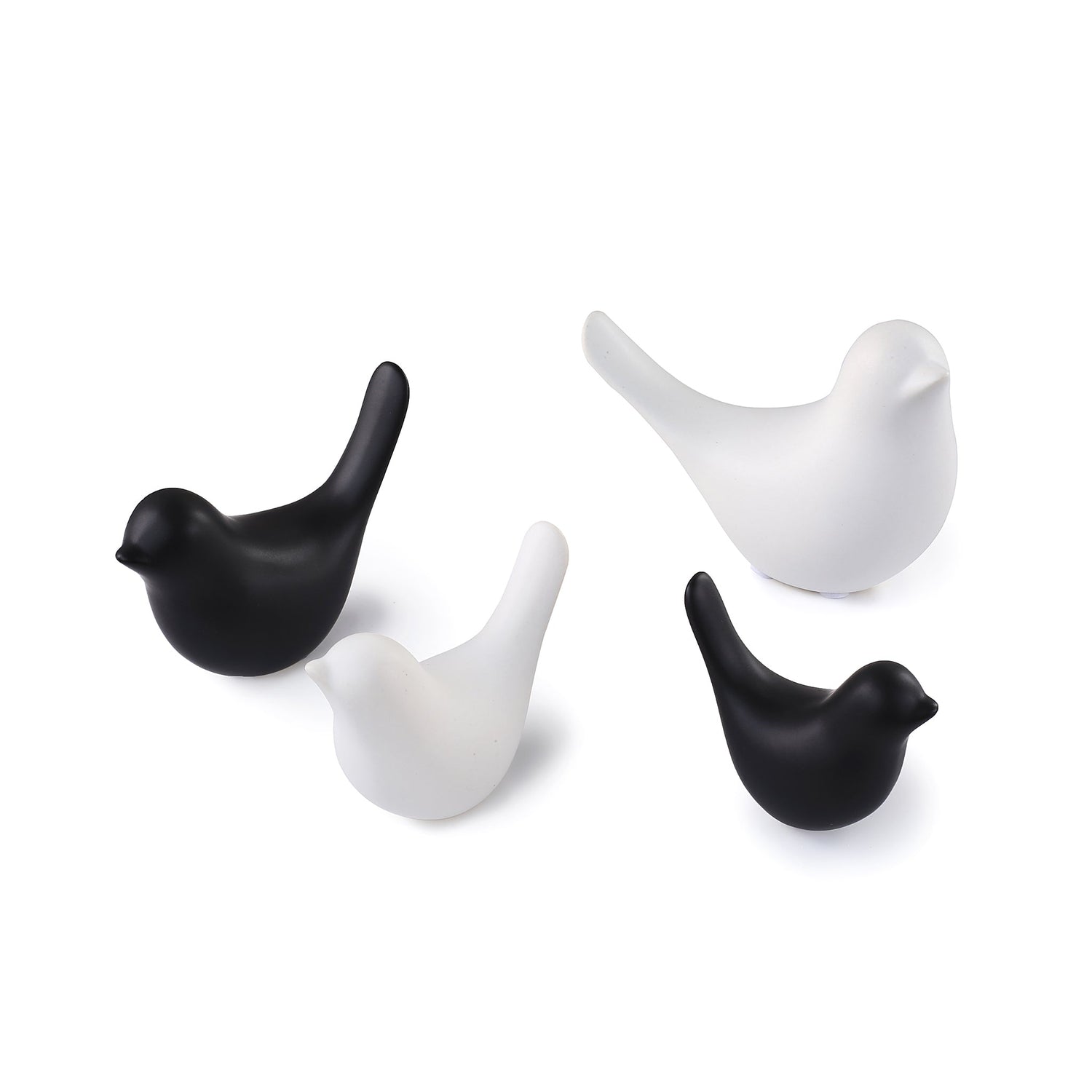 Disse søte, keramiske fuglene er laget i et tidløst design som passer inn i alle hjem. De kommer i både svart og hvit og i flere størrelser, slik at du enkelt kan kombinere dem i små grupper eller la én stå som et rolig blikkfang. Fuglene har rene linjer og en myk form som gir et harmonisk uttrykk – perfekte på en hylle, i en vinduskarm eller som en detalj på stuebordet.