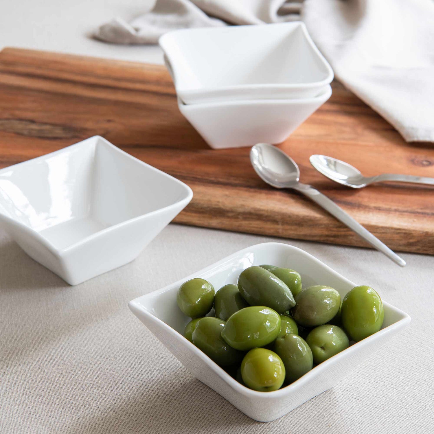Denne pakken inneholder fire små skåler, perfekt til tapas, taco, snacks, sauser, småretter eller desserter. Skålene er både dekorative og funksjonelle.