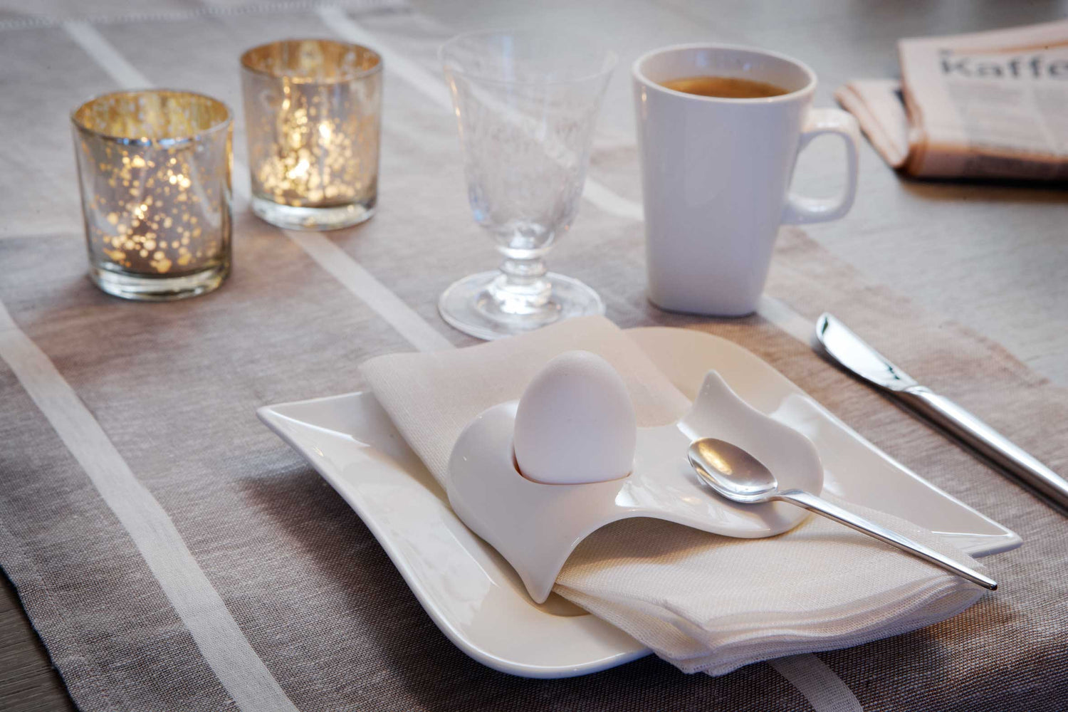 This package contains four decorative egg cups – perfect for weekend breakfast or the Easter table. But the egg cups can be used for much more than just eggs: they are also great for serving soy sauce with sushi, small snacks, or even a scoop of ice cream with a little sauce as part of a creative dessert serving.