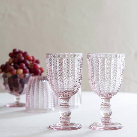 Explore our collection of wine glasses, water glasses, dessert glasses, jugs, and bottles in various sizes, colours, and designs.