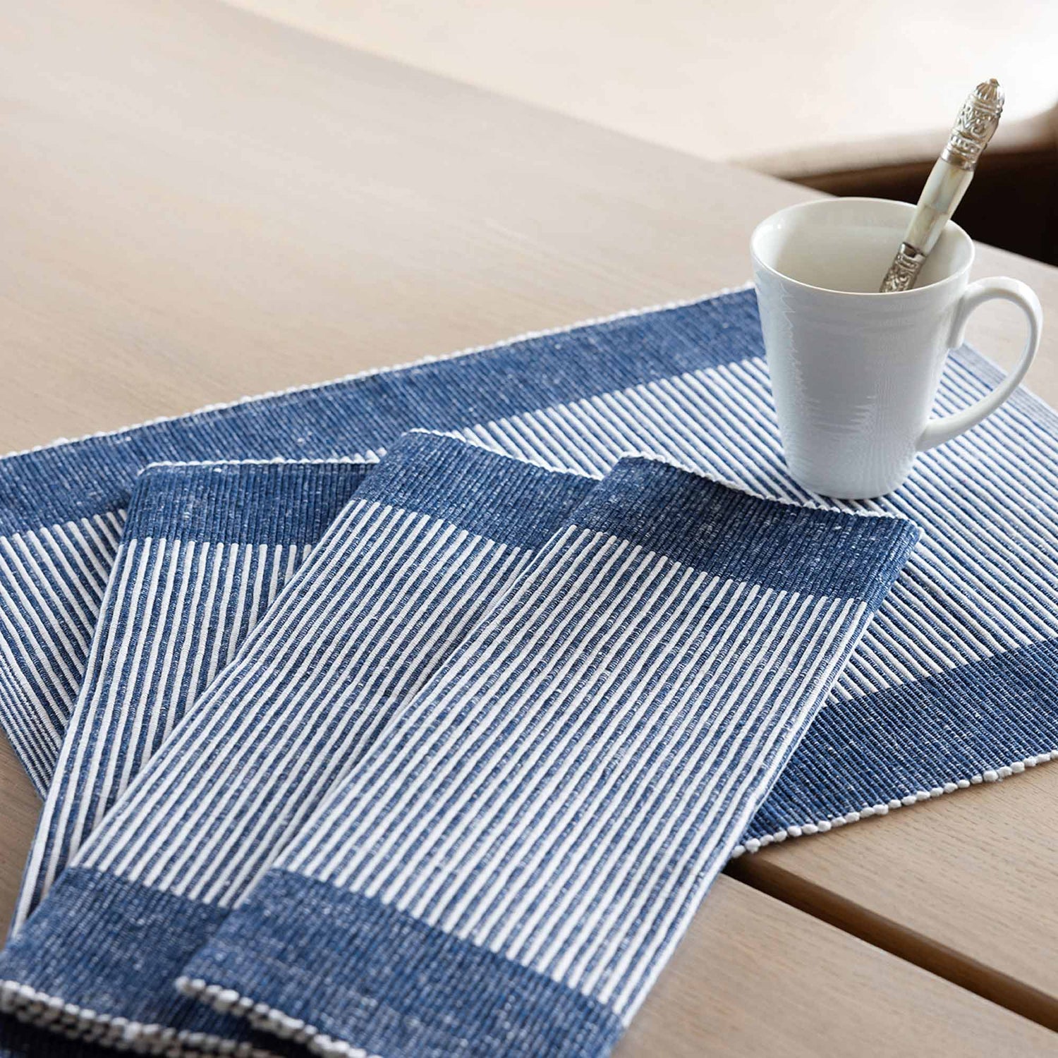 With Natalie placemats, you protect your table while creating a wonderful summer atmosphere. The placemats are sold in sets of 4 and are made from recycled cotton.