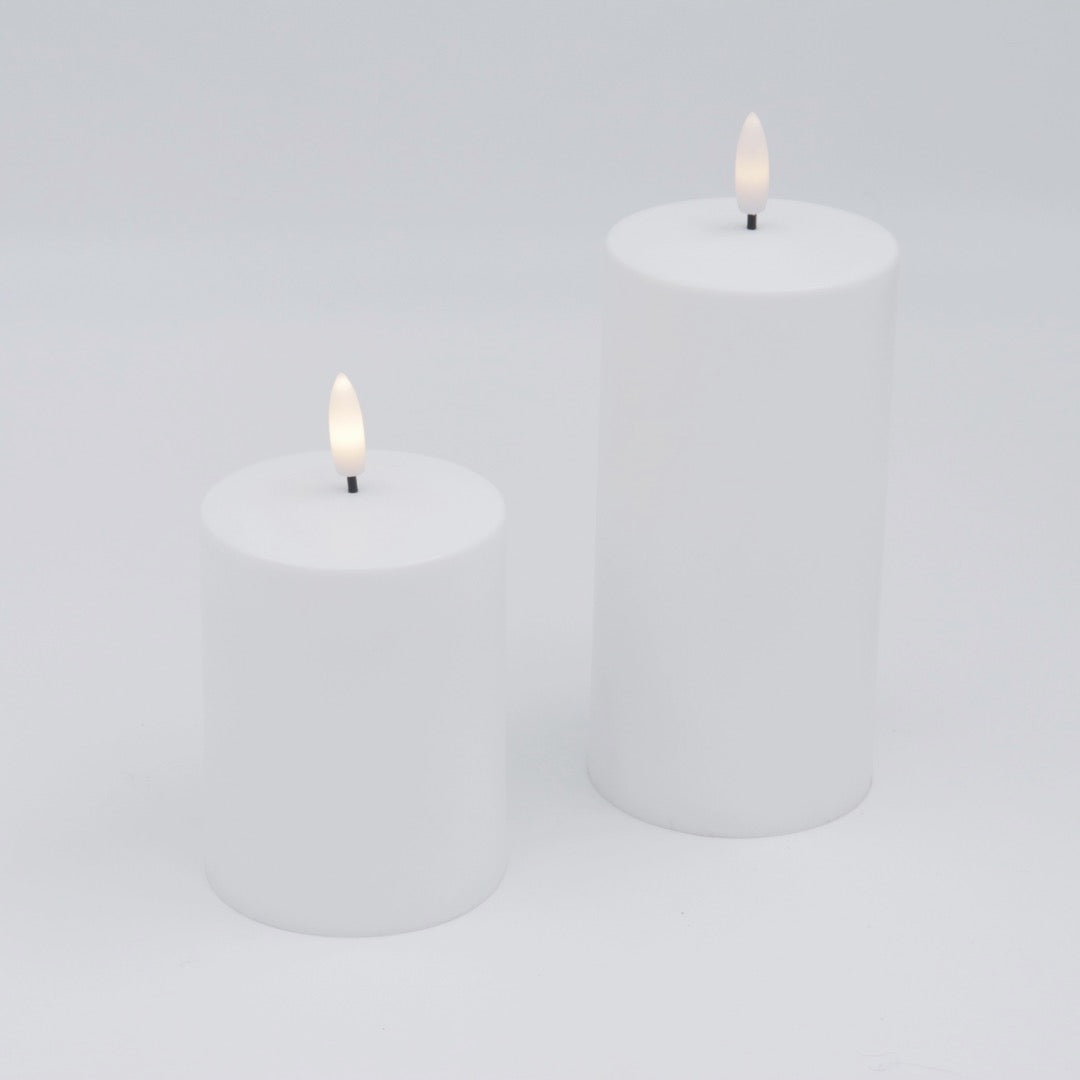 Candela Outdoor kubbelys er et praktisk og stemningsskapende produkt designet for både utendørs og innendørs bruk. Disse kubbelysene er laget av plast, noe som gjør dem robuste og spesielt egnet for utendørs forhold. De gir en varm og koselig atmosfære, perfekt for terrassen, inngangspartiet eller balkongen. Candela Outdoor finnes i hvit og tilbys i to størrelser. For flere valgmuligheter kan du oppgradere med vår Candela fjernkontroll (selges separat). Med den kan du enkelt tidsinnstille lysene, justere lysstyrken med trinnløs dimming og velge mellom en rolig, fast flamme eller en stemningsfull, blafrende effekt. Lysene bruker 2 stk C-batterier (ikke inkludert) som gir veldig lang brennetid